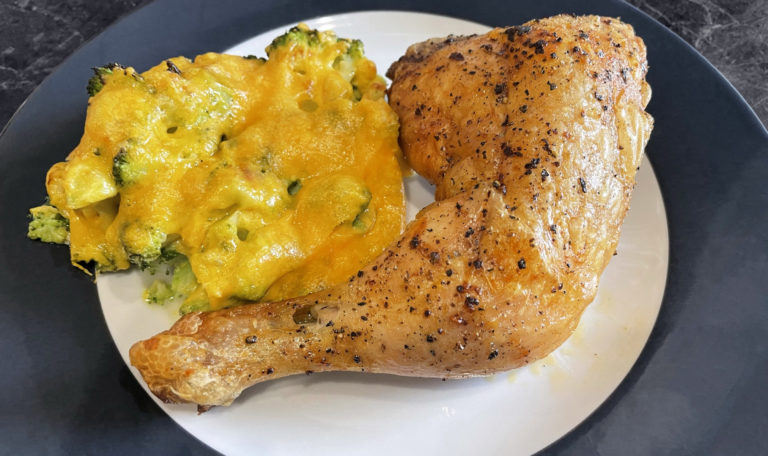 Keto: Hähnchenschenkel, Brokoli mit Käse überbacken