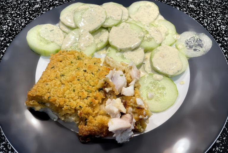 Keto: Kabeljaufilet Bordelaise, Gurkensalat