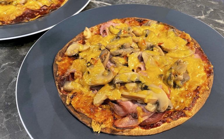 Keto: Pizza Schinken Salami Champignons
