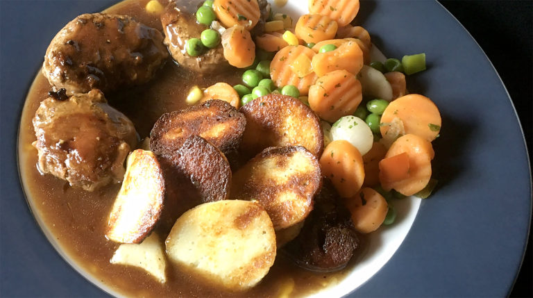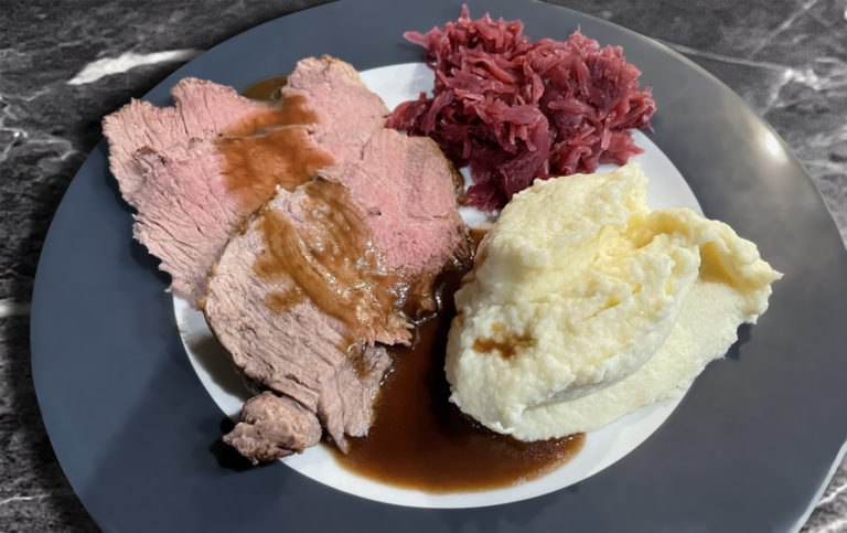 Keto: Rinderbraten, Püre, Rotkraut, Rotweinsoße